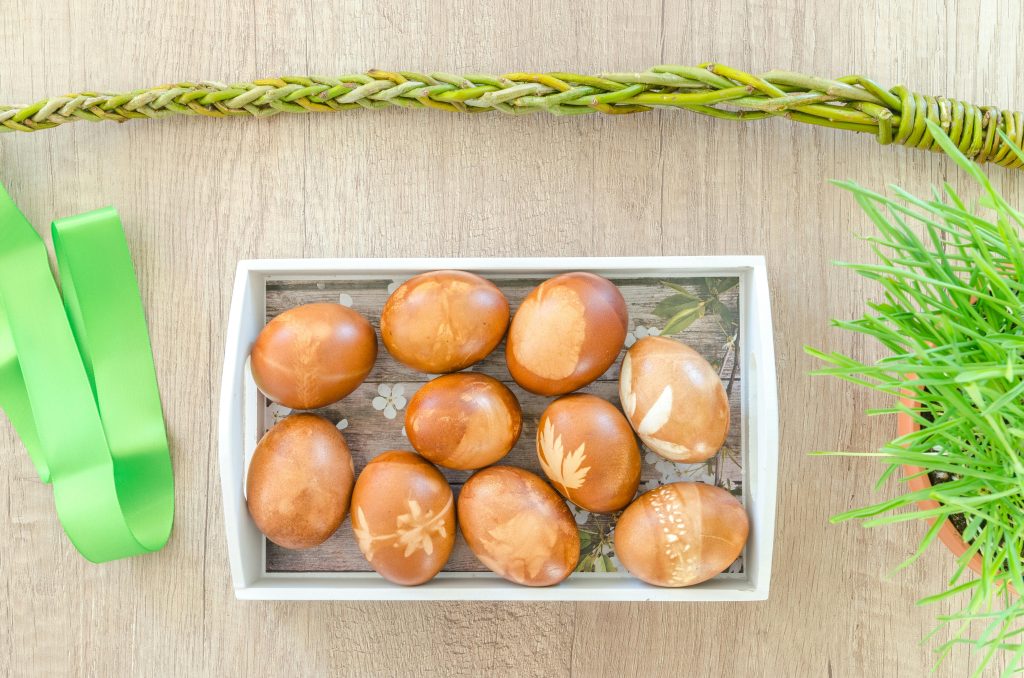 Za braon jaja najbolji izbor su lukovina, kafa, vino, jači čajevi i tamniji prirodni pigmenti. Na njima prirodne boje dobijaju toplinu i dubinu, ali neće biti tako svetle kao na belim jajima.