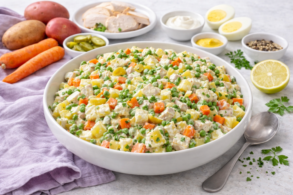 Ako želiš da od popucalih uskršnjih jaja napraviš nešto što može da stoji u frižideru i bude spremno za više porcija, ova lakša verzija ruske salate je odličan izbor. Zasitna je, ukusna i dovoljno praktična da bude deo praznične trpeze, ali i obrok za naredni dan.